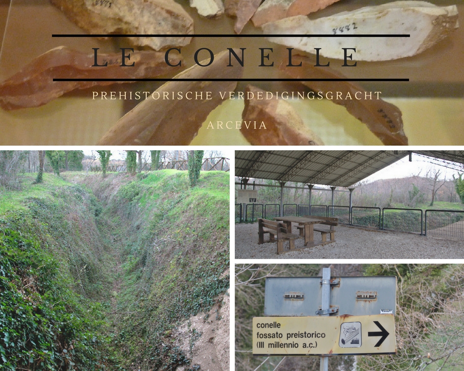 Niet alleen in de Middeleeuwen beschermde men zich tegen de vijand, zoals we reeds zagen bij de dikke kasteelmuren die Gradara omgaven. Ook de prehistorische mens moest zich verdedigen tegen ongewenste indringers. Sporen hiervan ontdekte men toevallig in 1879, tijdens de aanleg van de weg Arcevia-San-Ginesio in het gebied genaamd le Conelle. De latere archeologische opgravingen uitgevoerd in de periode 1958-1965, legden een verdedigingsgracht bloot uit het derde Millenium, het zogenaamde Nieuwe Steentijdperk. Waarschijnlijk uitgevoerd door de Prehistorische mens om zijn nederzetting te beschermen dat verderop lag. Sporen van die woonplaats, werden waarschijnlijk voor eeuwig vernietigd door de latere landbouwbewerkingen.