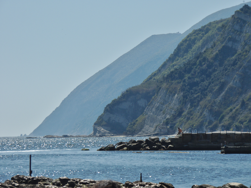 Nu zijn we op de juiste plek aangekomen: het strand van de Passetto, want we bevinden ons in de Passetto wijk. Vanaf het monument loopt er een heel trappenstelsel tot aan de zee en het rotsstrand. Zodra het mooie weer begint, zonnebaden de Anconitanen hier op de brede armleuningen of dalen af naar de rotsen.