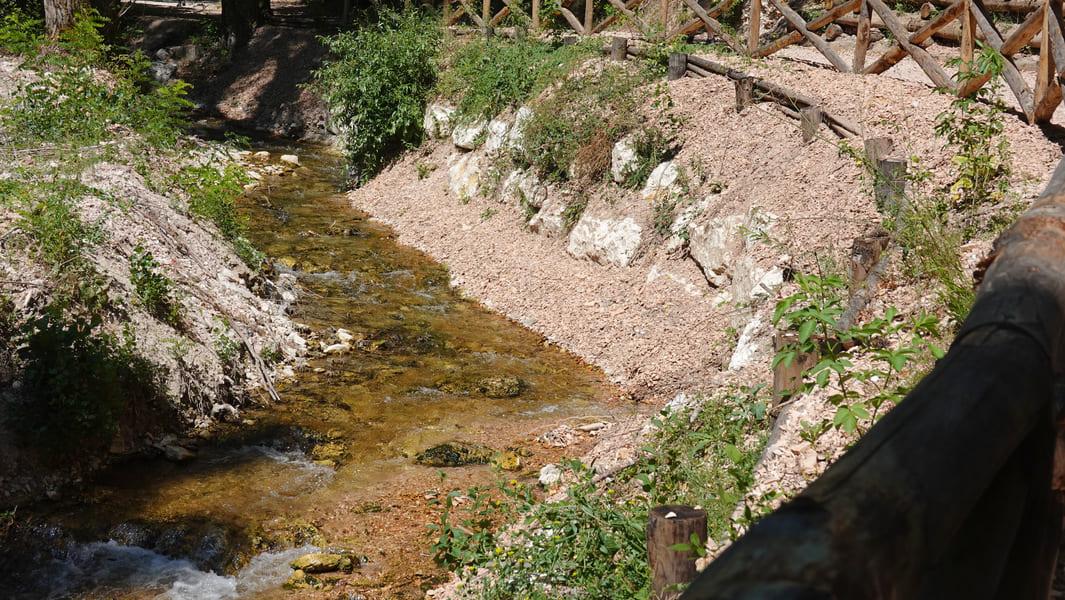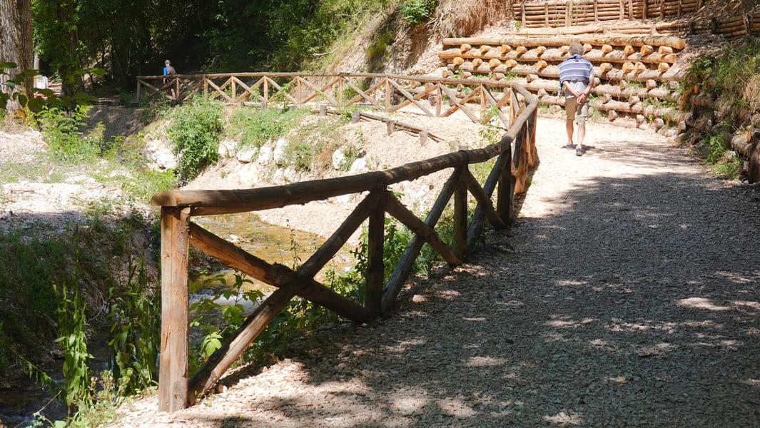 Tegenwoordig start het wandelpad met een percorso Kneipp. (een Duitse monnik die in de 19de eeuw een gezondheidsbehandeling ontwikkelde met afwisselende warm-en koudwaterbaden.)