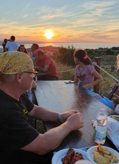 Omdat het nog vrij warm was, kozen we voor een licht voorgerecht en bijgerecht. We zaten aan een van de biertafeltjes en genoten van het uitzicht op de zee, Ancona en de zonsondergang.