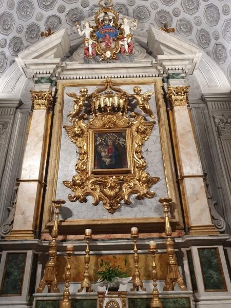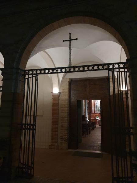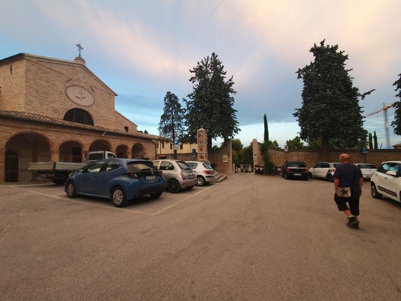 We namen hartelijk afscheid van onze tafelburen en de dienstdoende monnik en stapten de kloosterpoort uit. Maar wat een verrassing! Het was inmiddels donker geworden, maar de kloosterkerk, gewijd aan Maria van Loreto , stond open en was helder verlicht. Uiteraard namen we deze uitnodiging graag aan en keken we even rond in de kerk: