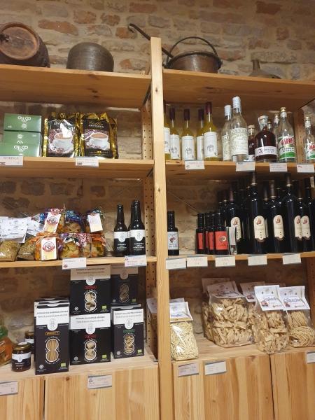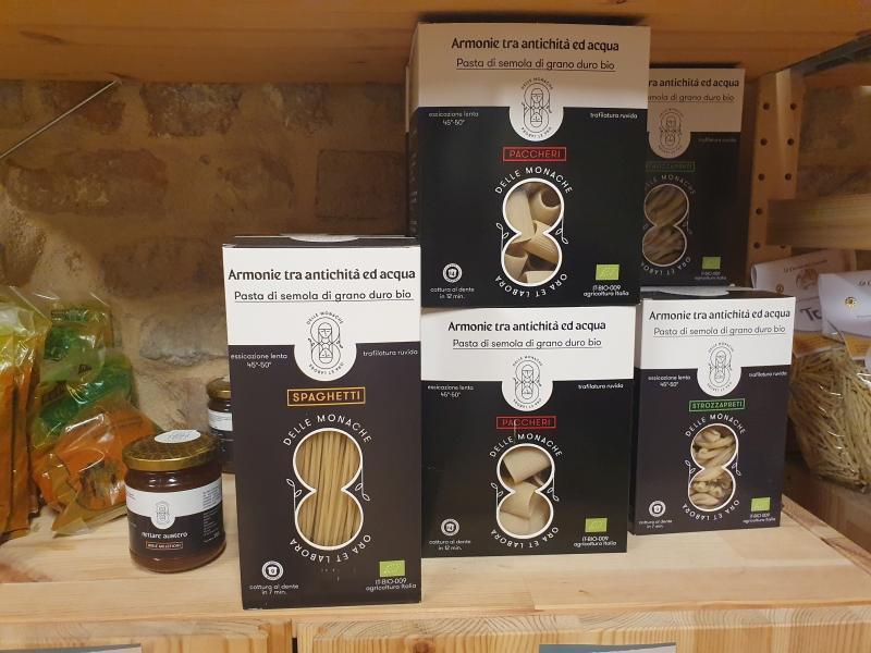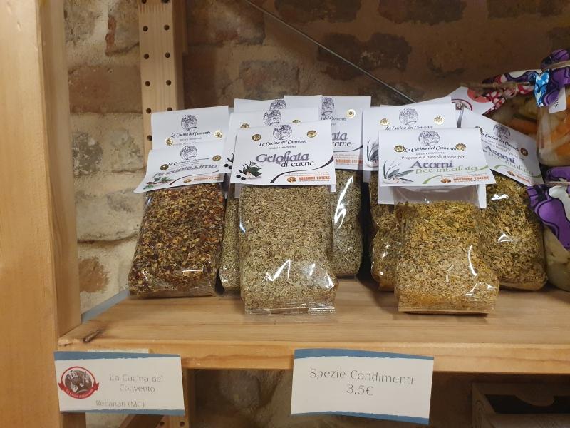 Mijn man Otto haalde later een goede caffè (espresso) aan de bar. Daar zagen we dat er ook producten van de monniken te koop waren, van pasta tot ingemaakte groenten.