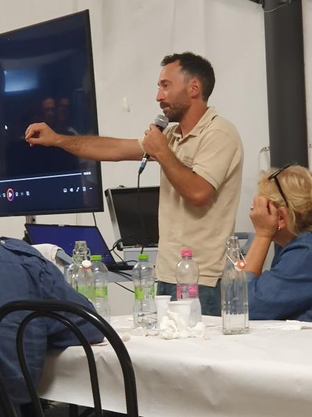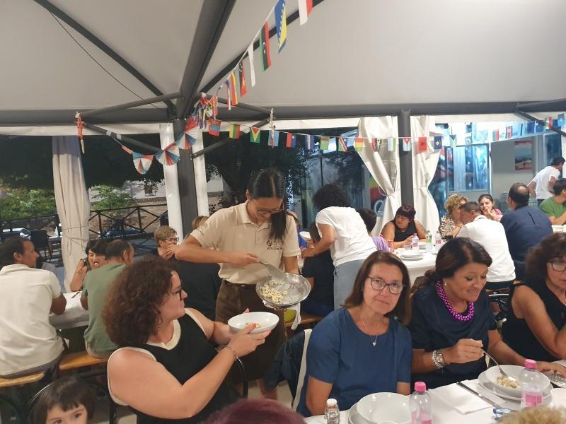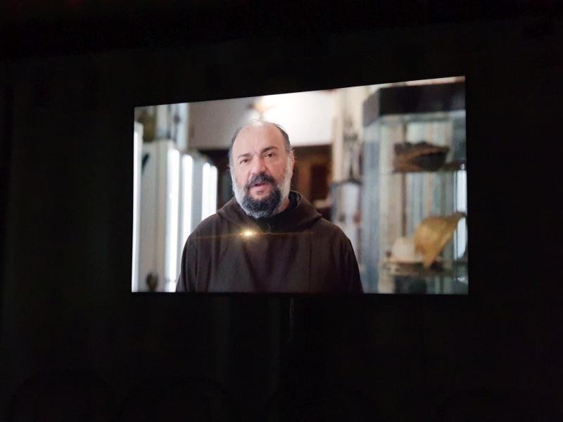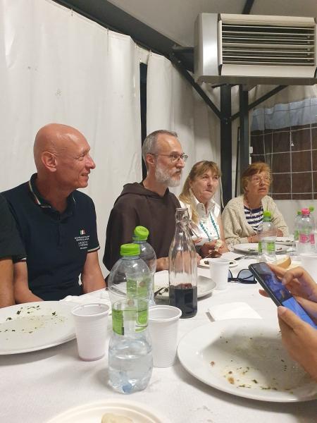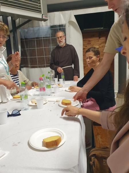 Vóór het dessert was er echter een korte, interessante presentatie. Twee van de jonge vrijwilligers stelden zich voor: ze werkten momenteel in de keuken en de bediening in het klooster in Recanati, terwijl ze zich ook voorbereidden op hun overzeese missies, o.a. naar Benin. Daarna volgde een video waarin broeder Pettinelli van het klooster verslag deed van zijn huidige missie in Ethiopië, waar ze straatkinderen ondersteunen en hen onderdak, voedsel en onderwijs bieden. Een andere broeder legde uit, dat er 15 monniken in Recanati zijn, maar momenteel slechts 7, omdat sommigen regelmatig op missie zijn.