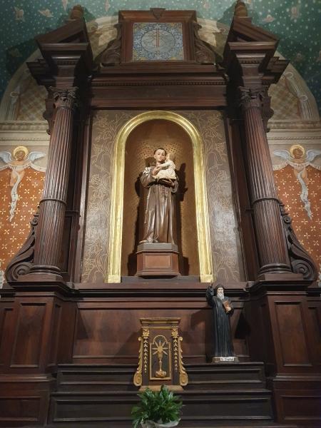 Het houten hoofdaltaar was uiteraard versierd met een afbeelding van Onze-Lieve-Vrouw van Loreto , gemaakt in Urbino in de 16e eeuw door de kunstenaar Girolamo Cialderi . De zijkanten, versierd met prachtige trompe-d’oeil (optische illusie), bevatten afbeeldingen van Sint-Clara en Margaretha van Cortona, en een beeld van Sint-Antonius . Aan de zijkant rechts van het hoofdaltaar zagen we een afbeelding van Madonna Consolatrice degli Afflitti (Troosteres van de bedroefden ), die tevens werd beschouwd als de beschermvrouwe van de familie Leopardi.