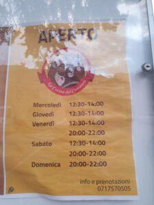 Bekijk hier het menu . Reserveren kan telefonisch (+390717570505), via WhatsApp of via het online formulier (ook in het Nederlands beschikbaar) onderaan de website van het restaurant: Website met reserveringsmogelijkheid.