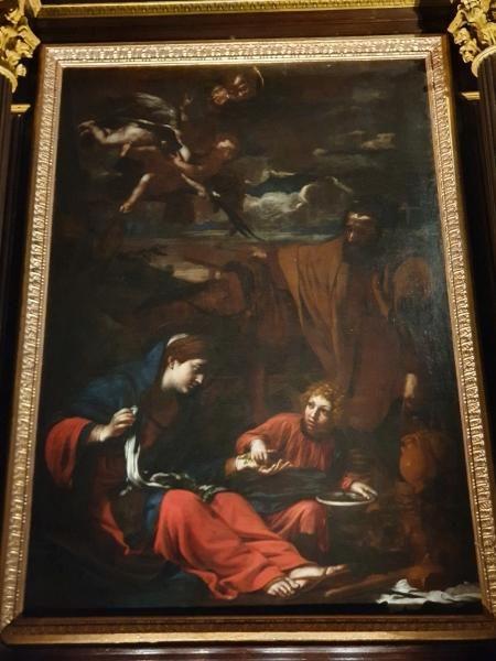 Maar het sensationele hoogtepunt was toch wel het grote schilderij direct rechts van de ingang: het draagt de merkwaardige naam Madonna dell’Insalata (Madonna van de Salade ) en wordt door experts nu toegeschreven aan niemand minder dan Caravaggio !
