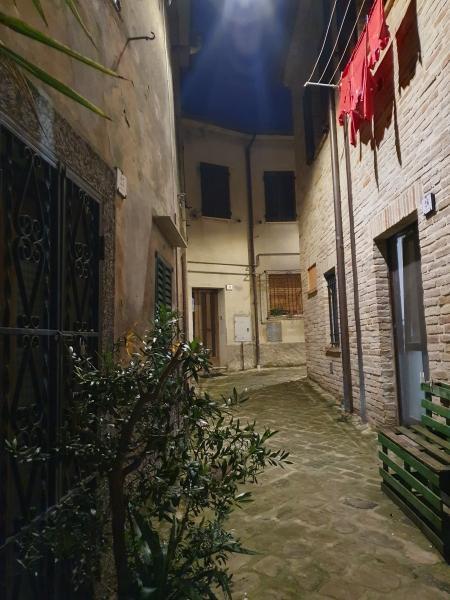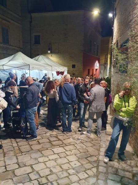 We lopen langzaam de stad uit. Nee, wacht, even snel naar de wc. Eigenlijk zitten er maar twee tieners voor me, maar die doen er langer over, dus we raken aan de praat met degenen die achter ons wachten. We raken bijna altijd aan de praat op festivals, en we vinden het geweldig. Het blijkt een voormalig burgemeester van Appignano en zijn vrouw te zijn.