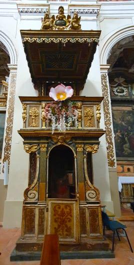 de overige zijkapellen herbergden telkens kleine kunstwerken met versierde zuilen, houten beelden en/of schilderijen: de realistische weeergave van de dood van de heilige Anna, het beeld van de bisschop van Bari, en de heilige Johannes de Doper. De overvloed aan kunstwerken maakte dat we niet alles op beeld hadden. Zo misten we het schilderij van Guercino van de heilige aartsengel Michael.