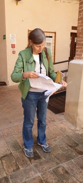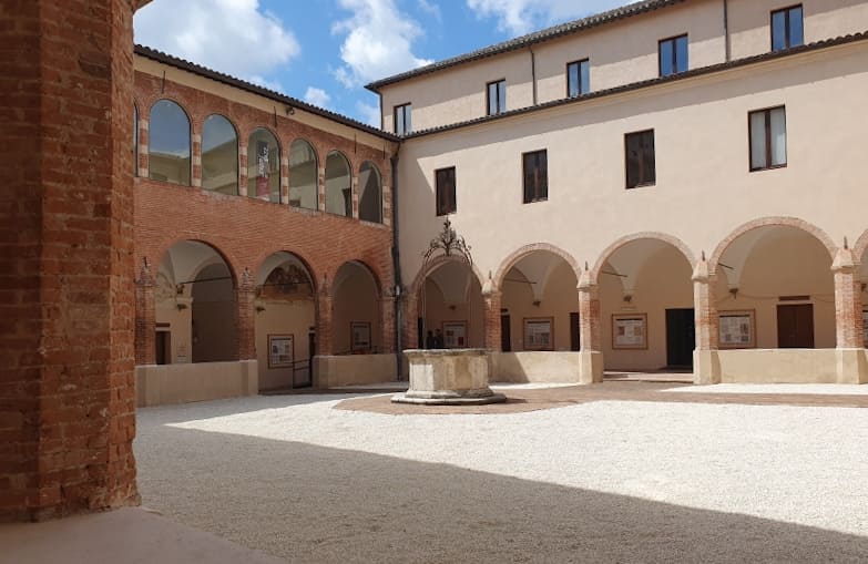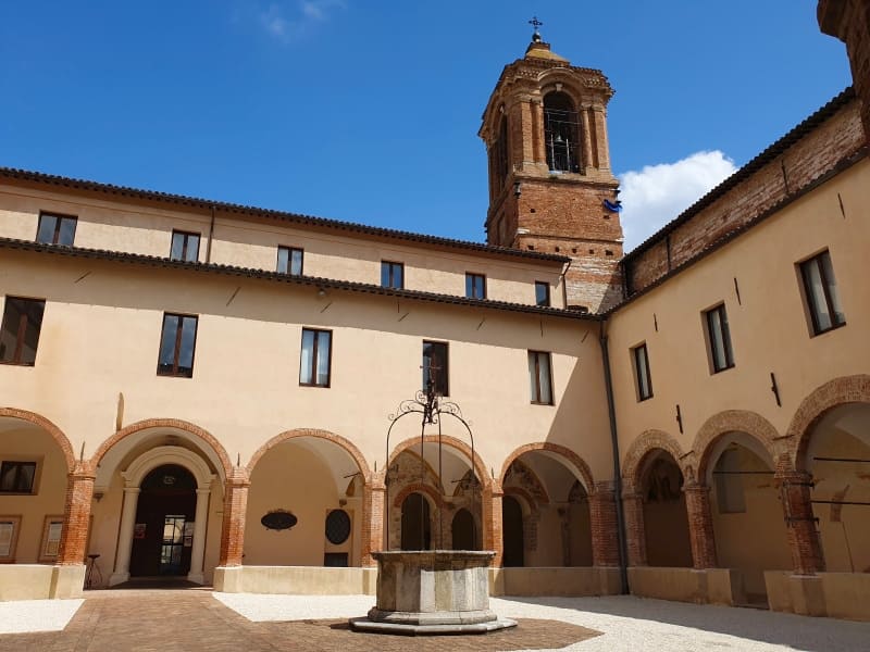 We kwamen terug aan de Piazza del Comune, staken die over en klommen de straat rechtdoor naar de kathedraal. Tegenover dit belangrijk kerkelijk gebouw bevond zich ook de vroegere Ospedale Santa Maria del buon Gesù, dat nu de pinakotheek herbergt. Hier vind je belangrijke kunst voornamelijk uit de middeleeuwen. Een bezoek aan dit museum bewaarden we voor een volgende keer. De kathedraal bezochten we wel, hierover berichten we in een ander artikel. Hopelijk ontmoeten jullie ook de vriendelijke koster die ons de verborgen fresco’s toonde achter in de kerk !