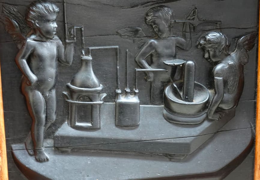 Er bijna tegenover wandelen we het apotheekmuseum voorbij, gevestigd in een 19de eeuwse apotheek. Tot 1982 behield het de functie van Farmacia (apotheek), erna kwam een erboristeria, waar men producten op basis van planten en kruiden verkocht. Tegenwoordig moet men op opendeur dagen wachten of eventueel het VVV bellen om het interieur te bezoeken. Elke en ik konden er een kijkje nemen tijdens één van de FAI dagen doch hierover maken we nog een artikel. Aan de buitenkant kan je al de mooie bewerkte ingangsdeur bewonderen.