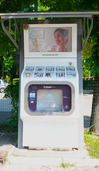 We parkeerden op de gratis parking (let op: het blauwe gedeelte is wèl betalend) aan de Via Cappuccini aan de Giardini Regina Margherita. In dit park bevindt zich ook een speeltuin. Wie met een e-bike komt, kan zijn fiets zelfs opladen. Heb je dorst? je drinkbeker vul je dan aan de waterzuil.