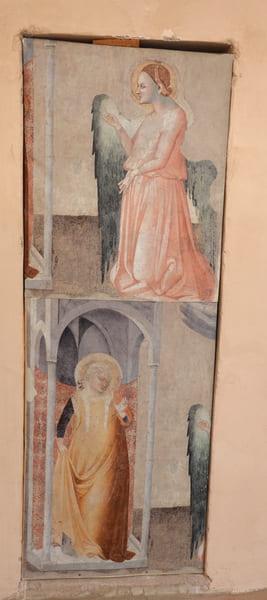 Je ziet er ook een mooie fresco uit de 14de eeuw door de school van Allegreto di Nuzio vervaardigd: de Madonna met het kindje Jezus op de troon omringd door Sint-Johannes de evangelist en San Venanzio. Elke en ik zochten ons suf naar dit fresco, maar ja we zijn niet echt de grootste en je moest toch even naar boven kijken….