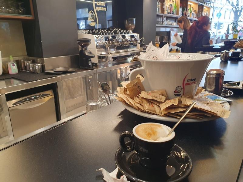 Maar eerst dachten we: laten we ontbijten, en trakteerden we onszelf op croissants (die hier in de regio Marche om onverklaarbare redenen brioche worden genoemd) en cappuccino in één van de charmante bars langs de Viale.