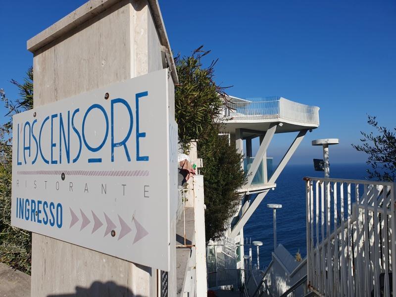 We hebben niets gekocht, maar rondkijken was erg leuk. Met zulk heerlijk weer trakteerden we onszelf op een lunch bij Ristorante Ascensore, dat een spectaculair uitzicht van 180 graden over de Adriatische Zee bood, voordat we naar huis gingen.