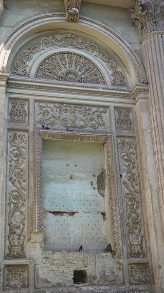 Deze ingangspoort is het enige wat overblijft van de oorspronkelijke middeleeuwse kerk!