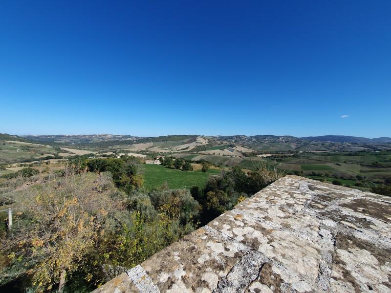 kasteel Rotorscio , waaraan het gebied zijn naam dankt. Wie nog niet genoeg heeft van de klim omhoog, kan nu rechtsaf slaan en een omweg maken. Er is echter niet veel te zien: het kasteel, gebouwd ergens tussen de 11e en 13e eeuw, is nu een verlaten ruïne. Het ligt op een hoogte van 547 meter en bood ooit een strategisch uitzicht over de Valle di San Clemente beneden. In de 14e eeuw regeerde de machtige familie Rovelloni er. Maar van de eens rijke graanschuren en uitgestrekte kasteelgronden bleven alleen het landhuis over. In de 19e eeuw, na de Napoleontische bezetting, verloor het kasteel aan belang. Vervolgens braken de inwoners van het naburige Castellaro de gebouwen en muren af om de stenen te gebruiken voor de uitbreiding van hun stad. Er wordt gezegd dat zelfs vandaag de dag nog reliëfs of wapenschilden van het kasteel te zien zijn op de huizen in Castellaro.