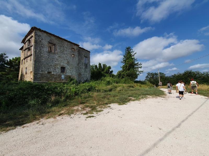 Nog steeds onder de indruk van de fresco’s en kleuren van San Paterniano, begonnen we aan het laatste deel van onze tocht voor vandaag. Vanaf hier gaat het alleen maar bergafwaarts, langs Fattoria Vito Celeste , bekend om zijn lokale kaas en een kleine boerderijwinkel.