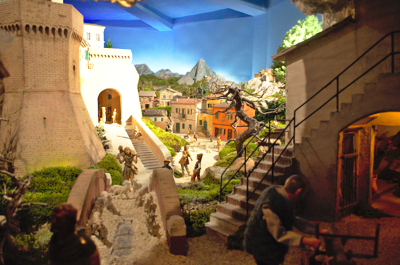 In Jesi aber gibt es seit 1979 ein regelrechtes Krippen-Meisterwerk: junge Leute im Ort fingen an, eine Krippe der besonderen Art zu gestalten indem sie die Krippenszene statt ins biblische Bethlehem in ihre Heimatlandschaft, die Marken, versetzten.