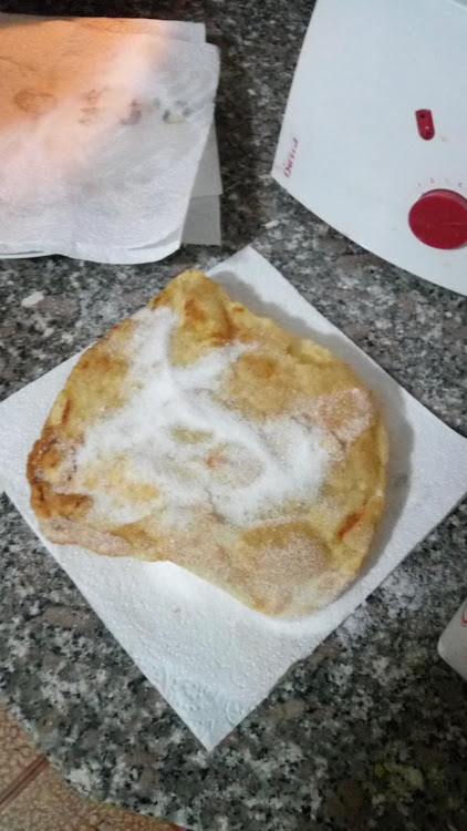 Cresciola: wenn man die Fläden in Öl ausbrät, dann erhält man Cresciola, die man mit Zucker bestreut als Dessert essen kann.