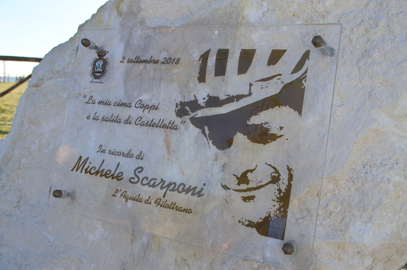 2017 wurde Michele Scarponi während einer Trainingsfahrt in seinem Heimatdorf Filottrano bei einem Verkehrsunfall mit einem Kleintransporter tödlich verletzt. Eine Tragödie für die Familie und für die ganzen Marken, die ihm in verschiedenen Orten Denkmäler errichtete. Eines steht im Bergort Castelletta, denn Scarponi sagte einmal, sein persönlicher „Cima Coppi“ wäre der Anstieg nach Castelletta. Mit „Cima Coppi“ wird sonst immer der jeweils höchste Berg im Giro d’Italia genannt, bennannt nach der Radlegende aus den 40er und 50er Jahren, Fausto Coppi.
