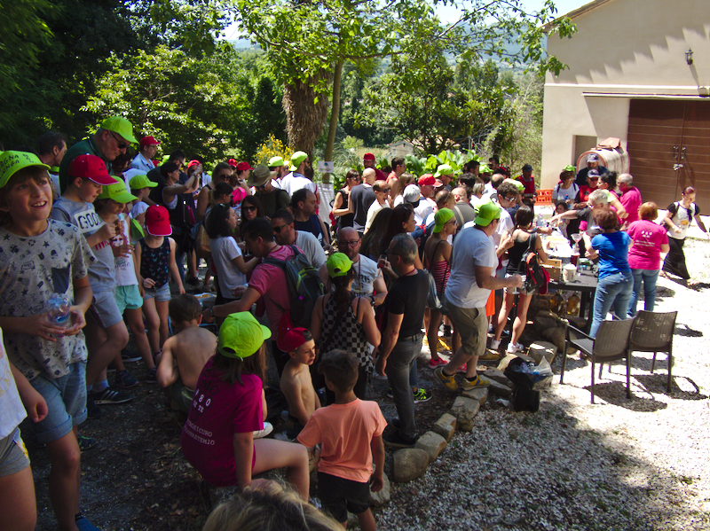 Das Tempo der Wanderung und wie lange man an den Stationen Pause macht, bleibt einem selbst überlassen. Die Wanderungen sind auch unterschiedlich lang: waren es in Treia weniger als 8 km mit insgesamt 7 (!) Versorgungsstationen unterwegs, so war es in Cupramontana etwas mehr und zudem etwas hügeliger. Es ist aber für jedermann gut zu schaffen, die Strecken sind normalerweise so ausgelegt, dass man sie auch mit kleinen Kindern oder mit Kinderwagen bewältigen kann. Meine damals fast 90-jährige Mutter ist sogar beim ersten Magnalonga in Cupramontana mitgegangen, allerdings wurde sie dann die letzten 2 steilen Etappen im Auto der Veranstalter mitgenommen.