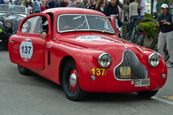 Die „1000 Miglia“, Italienisch für „1000 Meilen“, war ein Langstrecken-Autorennen auf öffentlichen Straßen, das zwischen 1927 und 1957 stattfand. Die jährlich wechselnde Strecke startete dabei immer in Brescia und hatte ihren Scheitelpunkt immer in Rom. Die Fahrer traten nicht gegeneinander an, sondern starteten versetzt und ihre Zeit wurde genommen. Das Rennen wurde fast ausschließlich von italienischen Wagen gewonnen, allerdings gewannen 3 Mal auch Deutsche Wagen, einmal ein BMW 328 im Jahr 1940 und zweimal ein Mercedes. Zuletzt 1955 ein Mercedes 300 SLR. Neben dedizierten Rennwagen wurden auch kleine Tourenwagen zugelassen, wie zum Beispiel ein Fiat 500 oder ein Renault 4CV.