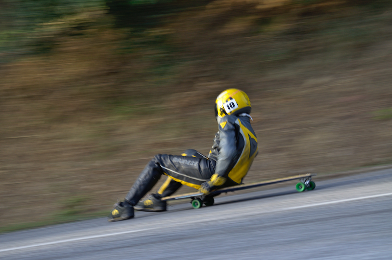 Stellt Euch einmal vor, mit 85 bis 90 km/h auf einem Skateboard zu fahren. Und jetzt stellt Euch vor, mit dieser Geschwindigkeit auf dem Skateboard eine kurvenreiche Straße 2,7 km lang bergab zu fahren. Ja und, es gibt weder Bremsen, noch Lenkstangen, noch einen Motor zum Stoppen, Beschleunigen oder Drehen.