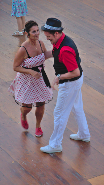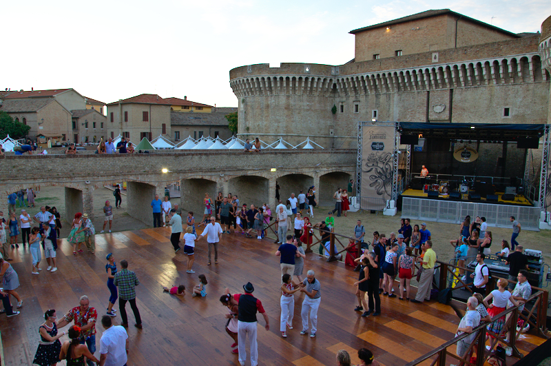 Zelebriert ist der richtige Ausdruck, denn Senigallia versetzt sich in die amerikanischen 40er und 50er Jahre zurück: Die Besucher kommen aus aller Welt und viele kleiden sich im Stile der 40er/50er Jahre und tragen entsprechende Frisuren und Accessoires. Manche Leute kommen mit Oldtimern aus der Zeit, es gibt sogar eine Oldtimer-Parade. Natürlich gibt es überall entsprechende Musik: auf kleinen und großen Bühnen überall in der Stadt gibt es unzählige Konzerte – kostenlos! Es wird Boogie-Woogie getanzt und es wirkt so souverän, als würden alle jeden Tag nichts anderes machen.