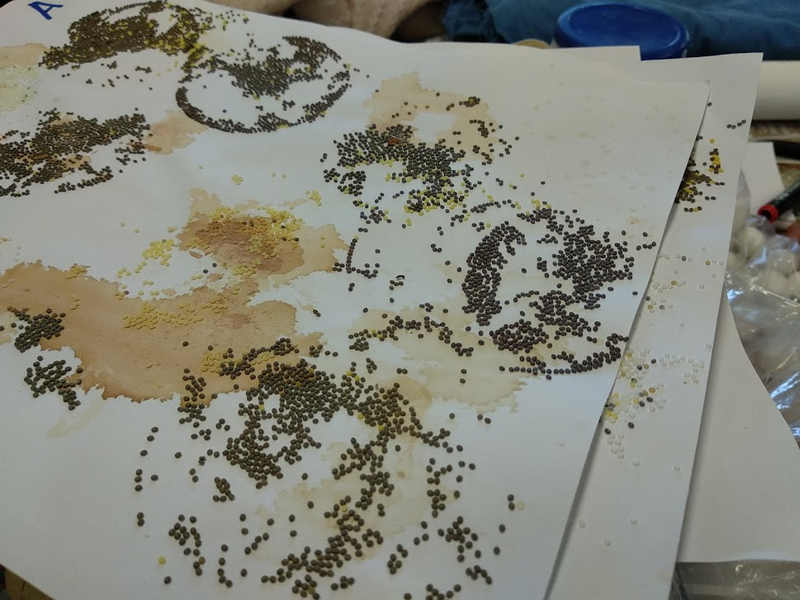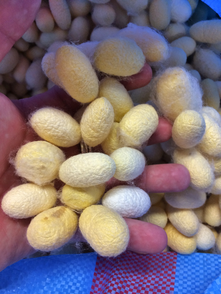 Neben dem Studium der Farbstoffe, beteiligte sich Professor Butta auch daran, die Tradition der Seidenproduktion in den Marken wieder zu fördern. Wir berichteten in einem früheren Artikel schon darüber. Beim Professor gab es deshalb die gelben Ascolan Seiden Kokons zu besichtigen, die resistenter gegen Krankheiten sind, als die billigeren weißen asiatischen Varianten. Und die winzigen Eier des Seidenschmetterlings würden noch monatelang ruhen, bis sie alle zur gleichen Zeit schlüpfen würden.