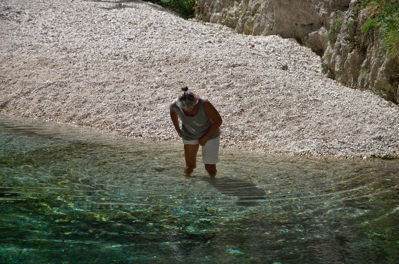 Also zurück bis zur Kreuzung, wo sie nochmal einen kleinen Abstecher zur Quelle des Tenna Flusses machten. Nach weiteren 2 Stunden konnten sie schließlich den künstlichen See sehen, der sich nach dem Erdbeben von 2016 aus dieser Quelle gebildet hat. Als Belohnung für die Mühen bot kristallklares Wasser denen Erfrischung, die sich in das eiskalte Wasser wagten.
