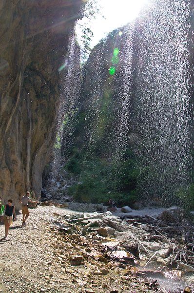 Nun ging es aber doch endlich zurück, wiederum mit schöner Abkühlung unter den kleinen Wasserfällen.