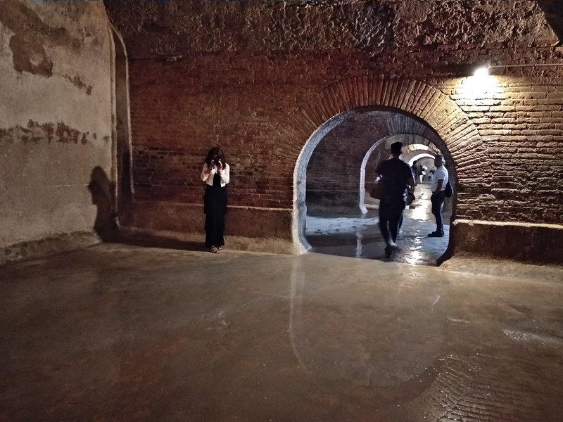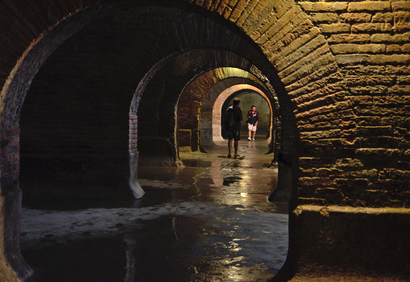 Die dritte Station war ein unterirdisches Wasserreservoir, das noch aus der Römerzeit stammt, und das sich in einer Seitengasse des Piazza del Popolo befindet. Unglaublich beeindruckend: Das Reservoir bestand aus 30 großen Gewölben und speiste einst alle Brunnen und öffentlichen Quellen der Stadt. Bis 1980 wurden noch 6 dieser Gewölbe für Brunnen der Stadt benutzt.
