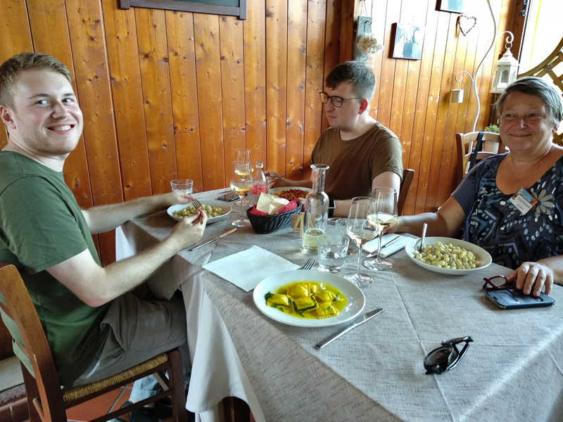 Nach der Tour genehmigten wir uns ein Mittagessen in der Osteria Orsolina außerhalb der Stadtmauer. Die Veranstalter hatten es empfohlen und wir wurden nicht enttäuscht: Es gab traditionelle Gerichte und leckere Desserts.
