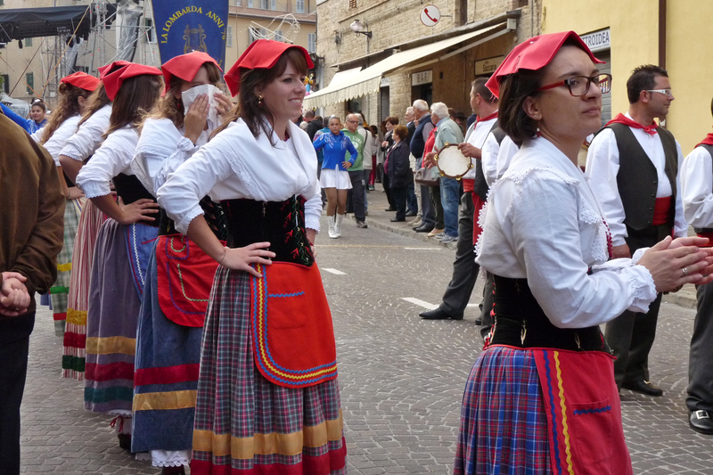 Ich habe den Saltarello schon einige Male auf Festen in der Gegend gesehen. Die Tradition wird bei uns am Ort zum Beispiel von der Volkstanzgruppe „Il Massaccio“ am Leben erhalten. Neben der Musik mit Akkordeon und verschiedenen, oft selbstgbauten Rhytmusinstrumenten gibt es dazu einen typischen Tanz. Saltarello leitet sich vom Wort „saltare„, springen ab. Das ganze zu einer fröhlichen und rhythmischen Melodie, die leicht zum Tanzen einlädt.