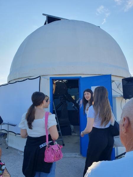 Außerhalb des Gebäudes war noch ein etwas kleineres Teleskop aufgestellt worden, durch das man ebenfalls schauen konnte. Wir hatten Glück, dass wir recht früh da waren, denn wir kamen recht zügig dran. Eine halbe Stunde später gab es schon eine ordentliche Schlange vor den beiden Geräten.