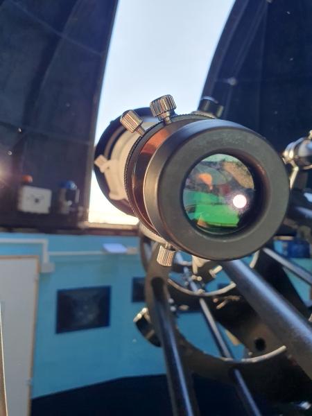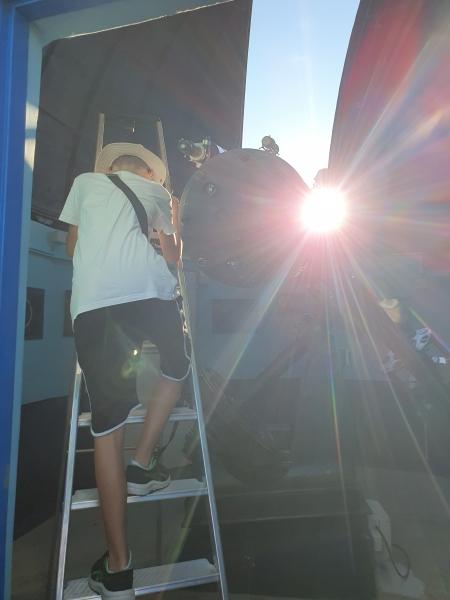 Wir dürfen noch im Hellen nacheinander eintreten und einen Blick auf das Teleskop und durch es hindurch auf eine Konstellation von Saturn und Sonne werfen, die zu der Zeit besonders gut sichtbar sein sollte. Um ehrlich zu sein, habe ich nichts wirklich erkennen können. Aber ich fand das Innere des Observatoriums spannend und wie man erstmal auf eine Leiter klettern musste, um überhaupt an das Teleskop heranzukommen.