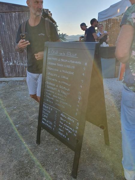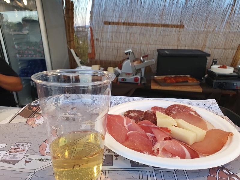 Danach kam wieder mein Einsatz: das Picknick! Rings um das Observatorium waren Bierbänke und -tische aufgestellt. Dazu gab es mehrere Stände, an denen wir Getränke und Essen kaufen konnten, betrieben vom anconetanischen Gourmet-Betrieb „Bontà delle Marche“.