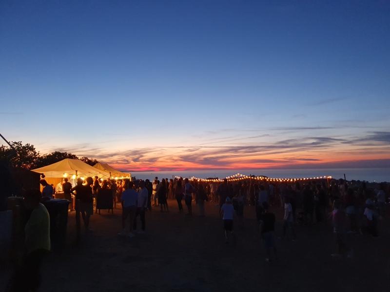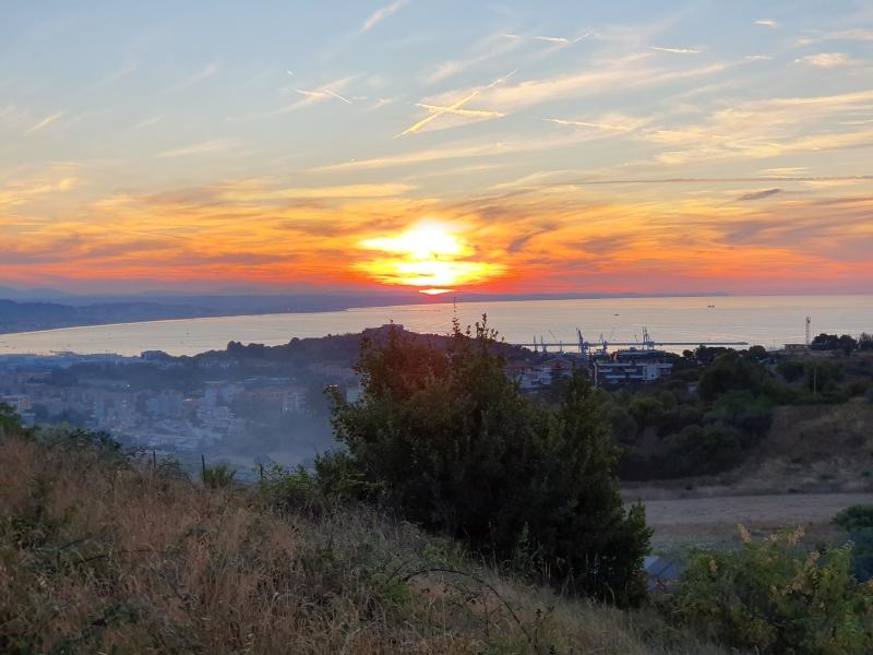 Weil es immer noch recht warm war, entschieden wir uns für leichte Vorspeisen- und Beilagenteller, setzten uns an einen der Biertische und genossen die Aussicht auf Meer, Ancona und den Sonnenuntergang.