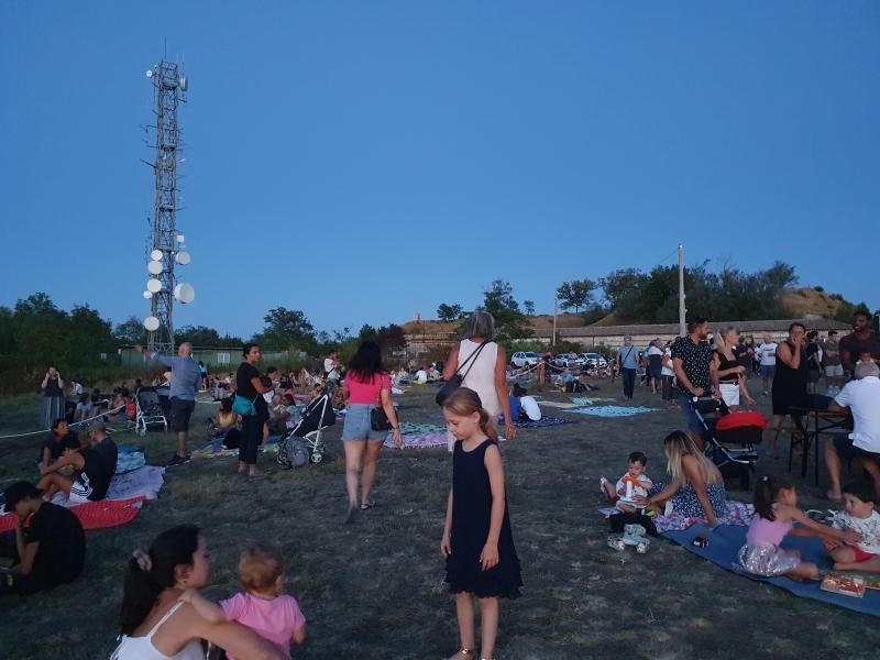 Langsam wurde es immer dunkler, aber alle waren gut gelaunt und saßen gesellig zusammen. Einige hatten auch Picknickdecken und eigenes Essen mitgebracht und fläzten sich gemütlich auf dem Rasen.