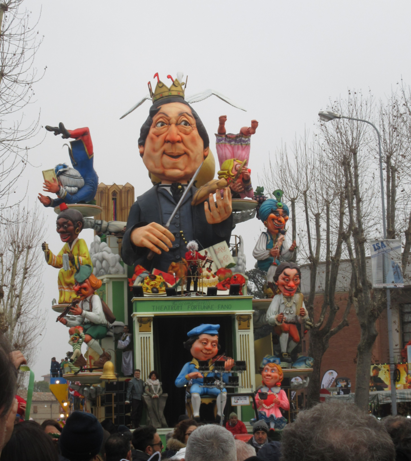Another one was entirely representing the famous compositor Rossini, born in Pesaro. The float is a giant open theatre with the most famous Rossini opera pièce.
