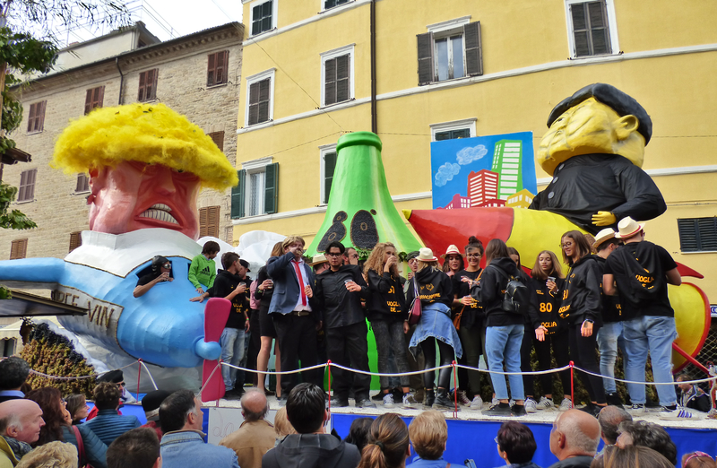 And last, but not least, you can enjoy the defile of the masquerade wagons (carri allegorici). Of course, they are decorated with grapes, they represent grapes-like scenarios, they talk about wine and grapes and they are majestically created by young people of Cupra Montana: a real commitment of these people, which turns out to become a real achievement! Unfortunately the actors speak in dialect, but it’s real fun also watching them playing!
