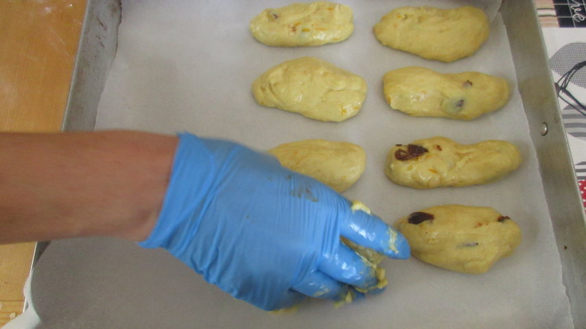 Today we prepare the Maritozzi. You may have seen (and tasted) them already in our neighbour regions: they may have the same name, yet they are different in what’s inside. The ones that are traditional in Rome, for instance, are usually without raisins and eaten together with cream, whereas our Maritozzi are even with a longer shape, with raisins in them and covered with frosting. The name may come from a funny nickname of husbands mariti, since they were usually given as a present to the brides-to-be, especially in Lazio. But in Le Marche, they were usually baked by the women of the farm, ready to be eaten from the men at work, right after having come home from the work in the fields in the evenings. Originally they were without eggs: they could be easily taken out even for days. They used to be baked together with the bread, hence once a week!