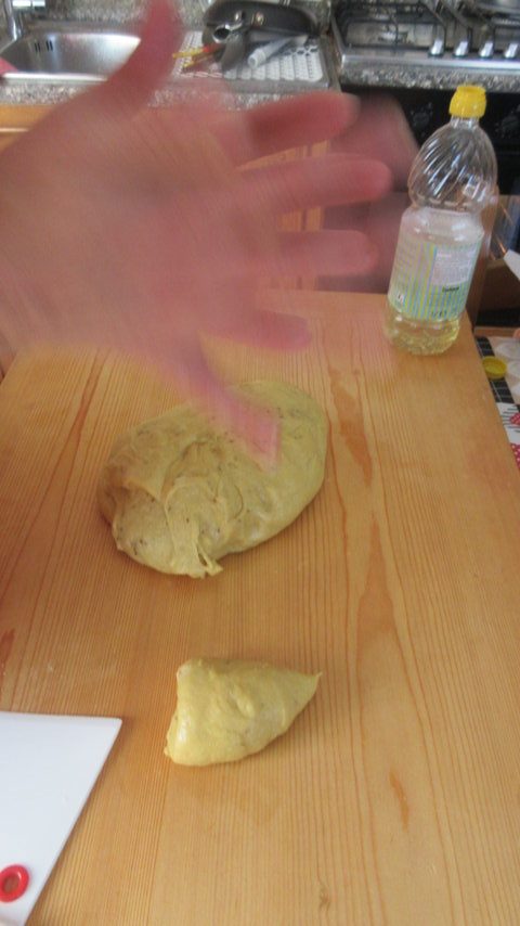 Once it has risen, let’s take the dough and continue to knead for a few minutes.