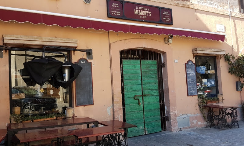 It’s been a long day! We can finish it where we started this morning, actually in the bar next to it. We can have indeed an aperitivo (that could be also our dinner) at Memory’s. We can taste good wine and eat good food while sitting on these fancy old sewing machines tables!