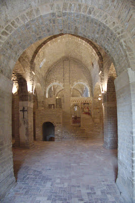 Elisa also showed us where the stables were when the abbey served as a farm. They had a view of the inside of the church from the stable. During the last works on the abbey, remains of the original church were probably uncovered. This part of the old abbey could have served as a room for the non baptised people, that could nevertheless follow the Mass.