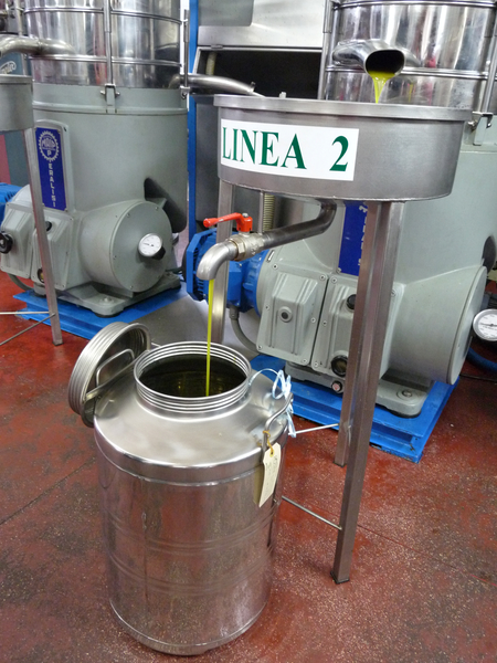 An incomparable smell of fresh olive oil is in the air and it is a hell of a noise. Every now and then one of the two lines fails, and an employee has to be on the spot to fix the problem. Since it is so busy, the mill has a very tight schedule, and works also overnight.