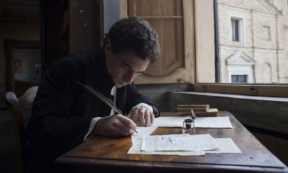 Hoog begaafd als hij was, overtrof hij al snel zijn leermeesters en zijn enige redding was zijn correspondentie met de revolutionaire auteur Pietro Giordani. In de film ziet men hem al schrijvend aan het raam diep voorover gebogen over een houten lessenaar. Hij wilde dan ook weg uit het benauwde Recanati doch zijn zwakke gezondheid verhinderde dit voor lange tijd. Uiteindelijk reisde hij dan toch naar Rome, Florence, Pisa en Napels, maar zijn zwaarmoedigheid bleef zijn vaste metgezel.