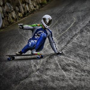Het Longboard lijkt veel op een skateboard maar is langer en zwaarder omdat het ècht bedoeld is om te rijden en niet om te stunten, te springen e.d. De rijder staat op het bord en draagt meestal een leren pak, een helm en versterkte zolen onder de schoenen waarmee hij kan remmen. De maximale snelheid die kan worden bereikt met een longboard is 85 km / h. Als de rijder wil draaien of driften, moet hij een “slide” uitvoeren, meestal gebeurt dat met behulp van de hand die in een versterkte handschoen zit op de grond en het lichaam overeenkomstig te verplaatsen.