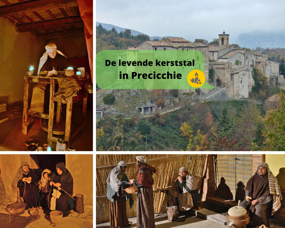 Wij bezochten enkele jaren geleden de Presepio Vivente (levende kerststal) van Precicchie. Door het jaar een bijna uitgestorven dorp in de bergen, maar rond Kerstmis gonst het van de mensenstemmen en de bedrijvigheid.