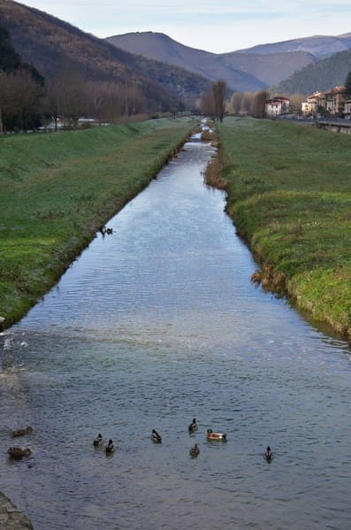 Het pad komt uit achter de papierfabrieken en het laatste deel van het oude Pioraco.